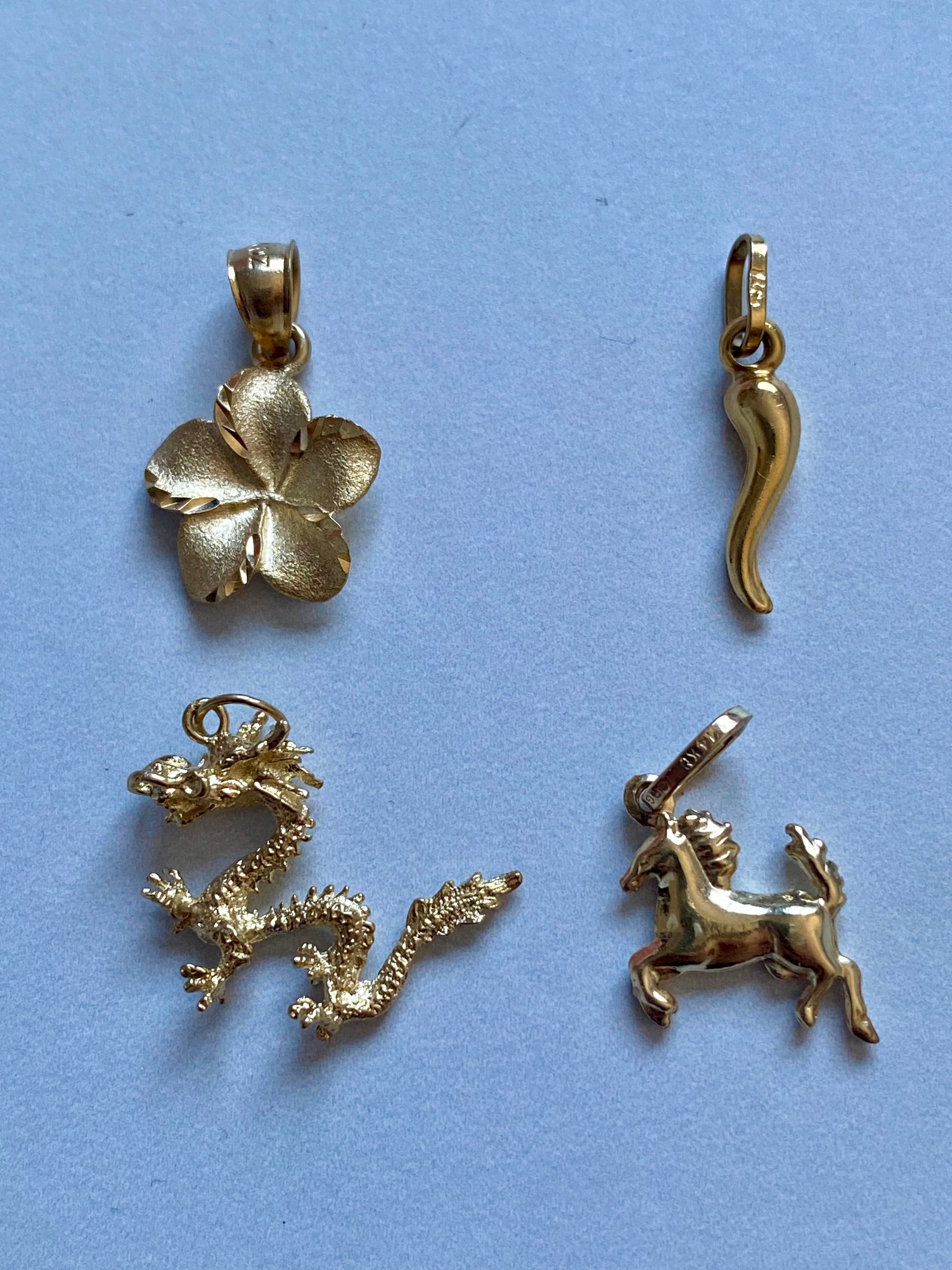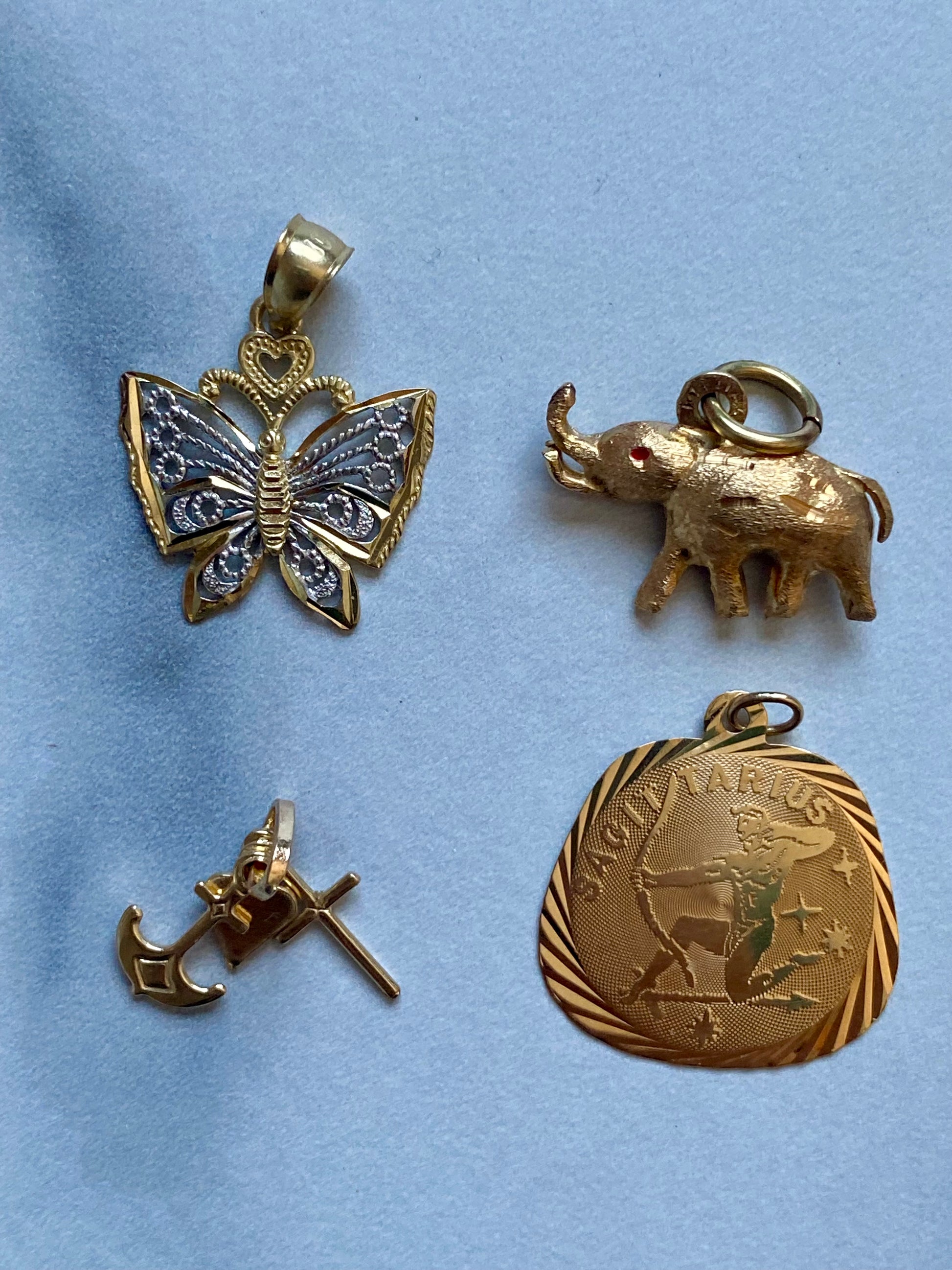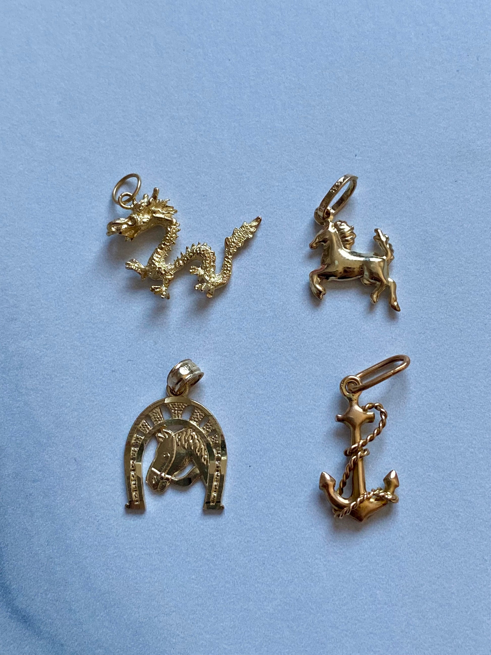 A lot of small gold charms available for purchase. Dime for size reference, please check the second picture for corresponding letters and choose the one you want in the drop-down: